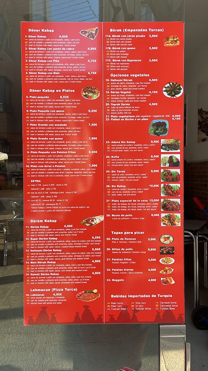 Welcome to Kapadokya, a culinary gem nestled in the vibrant streets of Castelldefels, Barcelona. Located on Av. Santa Maria, this delightful eatery stands out for its rich offerings of Middle Eastern fare, particularly known for its delectable kebabs that start at an irresistible price of just 4.7 euros. Whether you are a local or a traveler exploring the area, Kapadokya promises a hearty culinary experience that won't break the bank.
